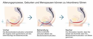 EMS-CUSHION wurde von Urologen entwickelt und ist das modernste Verfahren zur Linderung von Inkontinenzbeschwerden und der Unterstützung der Rückbildung nach Schwangerschaften. EMS-CUSHION löst damit ein Problem, das fast die Hälfte aller Frauen im Laufe ihres Lebens einmal betrifft: Die Erschlaffung der Beckenbodenmuskulatur. Viele Frauen klagen besonders nach Geburten, in den Wechseljahren oder im Alter über Probleme einer eine schwachen Beckenbodenmuskulatur. Dies verursacht Inkontinenz oder auch sexuelle Störungen.